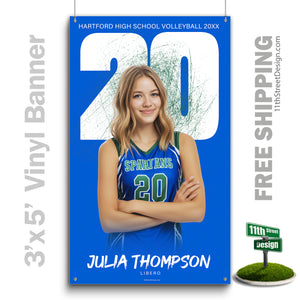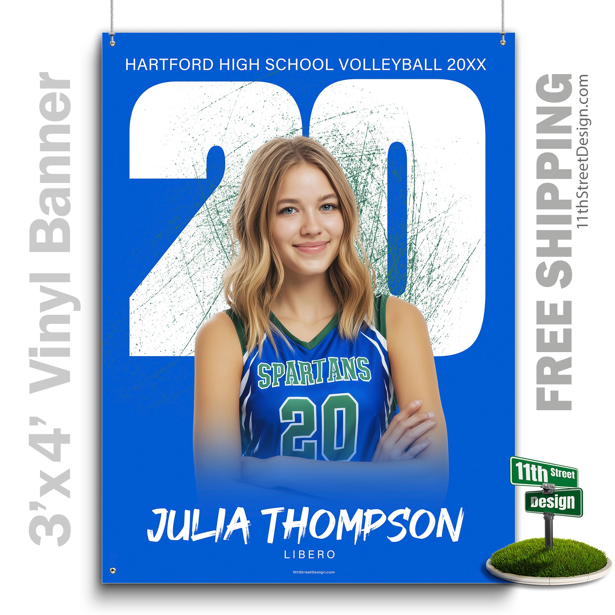 You are purchasing a custom designed high quality 13 oz. vinyl sports banner with corner grommets. We will add your photo and text to create the perfect personalized sports banner for senior night posters or team gifts!