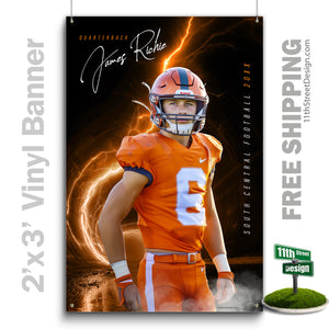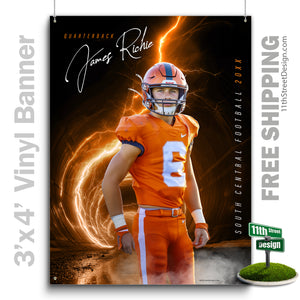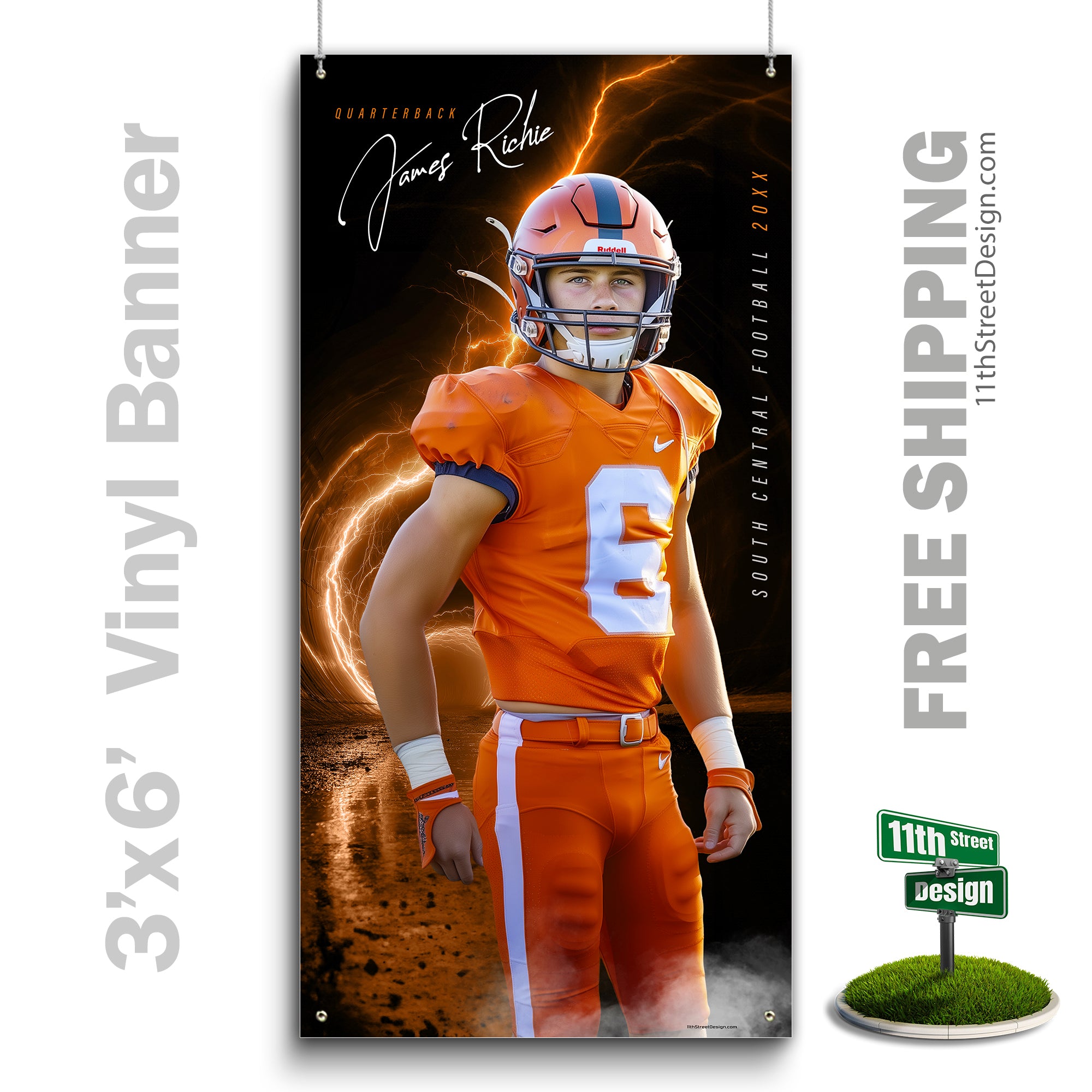 • You are purchasing a custom designed high quality 13 oz. vinyl sports banner with corner grommets. We will add your photo and text to create the perfect personalized sports banner for senior night posters or team gifts!