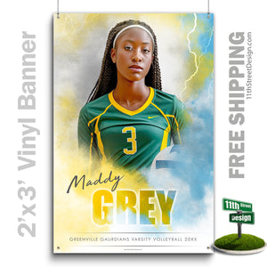 • You are purchasing a custom designed high quality 13 oz. vinyl sports banner with corner grommets. We will add your photo and text to create the perfect personalized sports banner for senior night posters or team gifts!