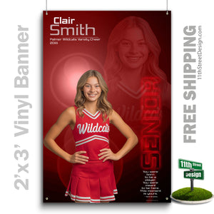 • You are purchasing a custom designed high quality 13 oz. vinyl sports banner with corner grommets. We will add your photo and text to create the perfect personalized sports banner for senior night posters or team gifts!